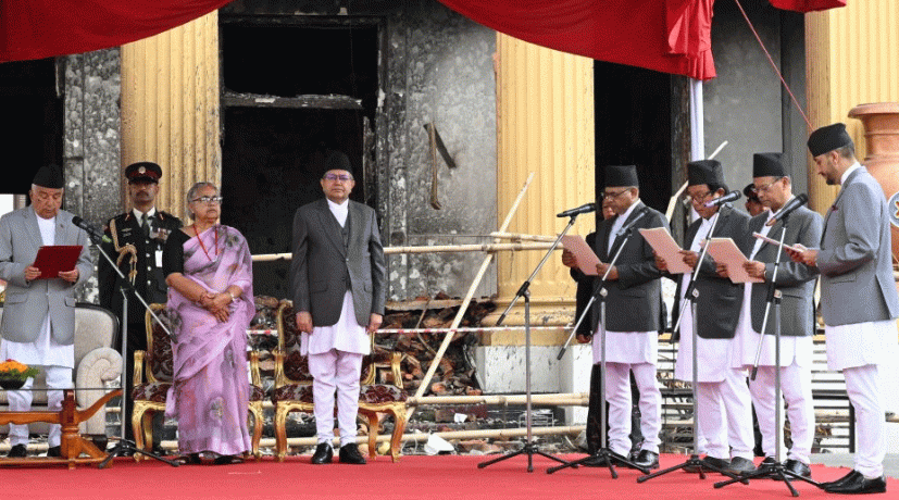 राष्ट्रपति निवास शीतल निवासमा सोमबार आयोजित विशेष समारोहमा राष्ट्रपति रामचन्द्र पौडेलले मन्त्रीहरूलाई शपथग्रहण गराए। मन्त्री बनेकामा पूर्वन्यायाधीश अनिलकुमार सिन्हा, आविष्कार केन्द्रका संस्थापक महावीर पुन, पत्रकार जगदिश खरेल र विज्ञ मदन परियार छन्।